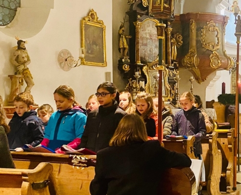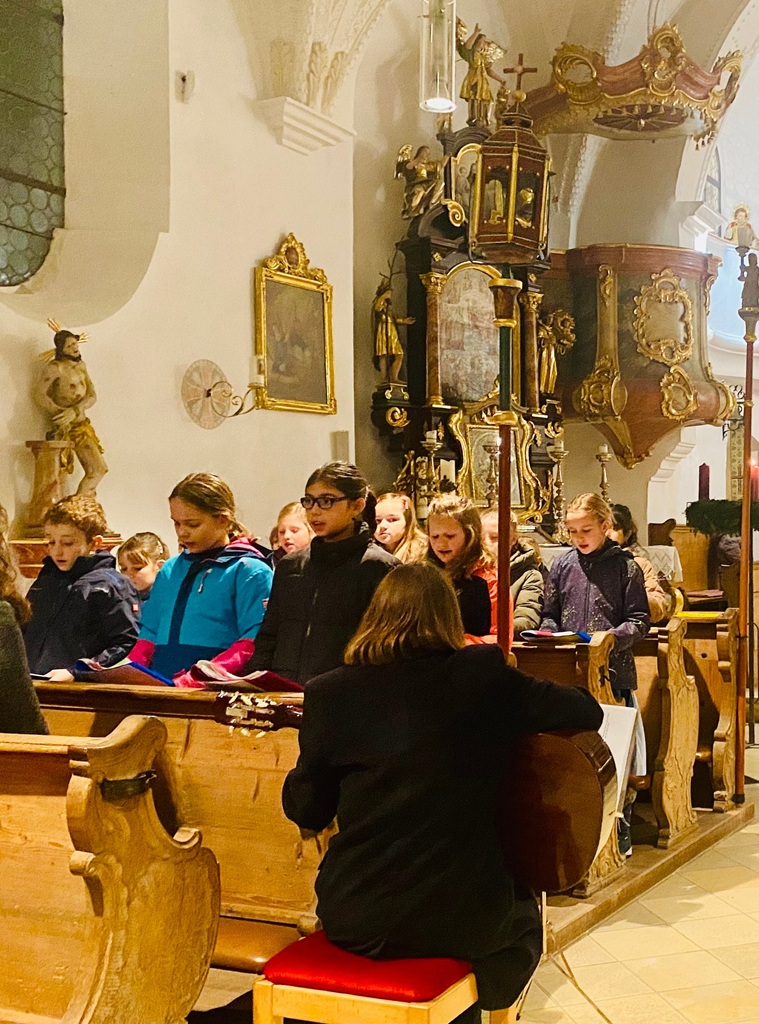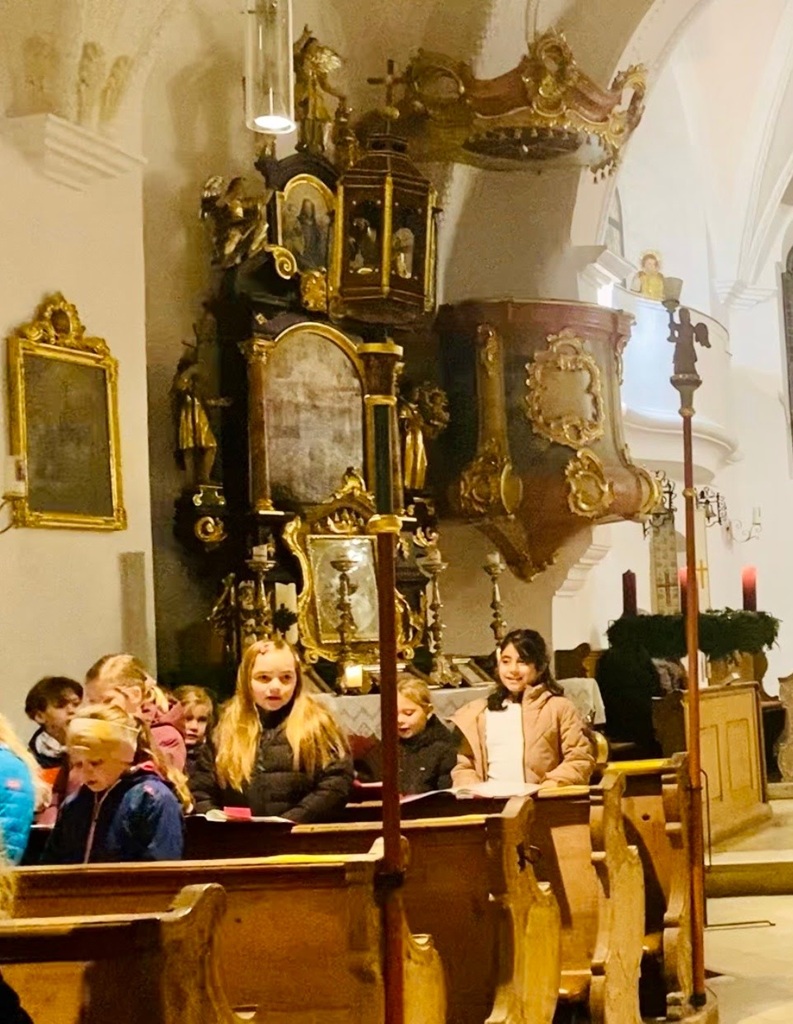 Am Vorabend zum 3. Advent übernahm unser Schulchor die musikalische Gestaltung des Gottesdienstes in St. Georg. Sechs Kinder trauten sich am Abo die einzelnen Strophen des Zwischengesanges vorzutragen. Andere Chorkinder übernahmen die Fürbitten. Unser Diakon Markus Kahler ging mit seiner Predigt auf die Kinder ein und so wurde es ein wunderschöner Gottesdienst.