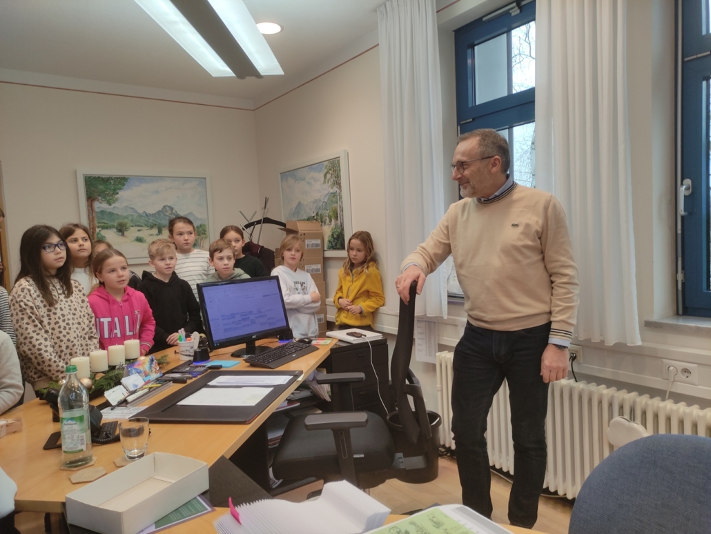 Voller Interesse besuchten die Kinder 4. Klassen der Grundschule Großholzhausen das Rathaus. Die Mitarbeiter der verschiedenen Ämter stellten ihre Arbeit vor. Zwischendurch gab es Brezen und Saft als Stärkung. Unser Bürgermeister nahm sich für die Kinder viel Zeit, er führte sie durch die Räume des Rathauses und beantwortete alle Fragen. Herzlichen Dank für diesen interessanten und lehrreichen Vormittag!