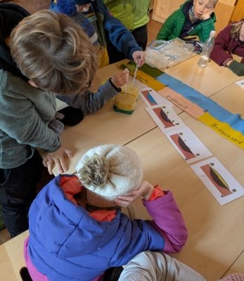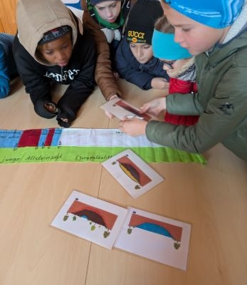 In der Galerie bekommen wir eine Führung zur derzeitigen Ausstellung „Mensch, Raum, Kosmos“ und nehmen dann an einem Workshop teil.