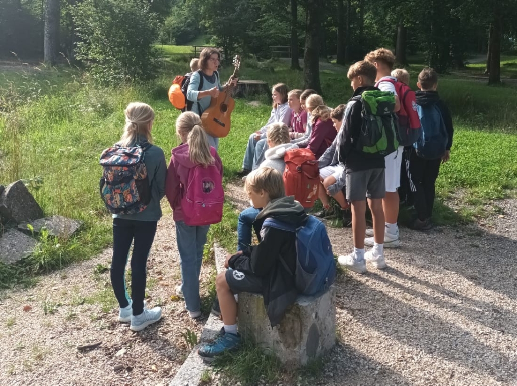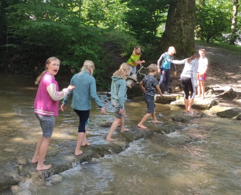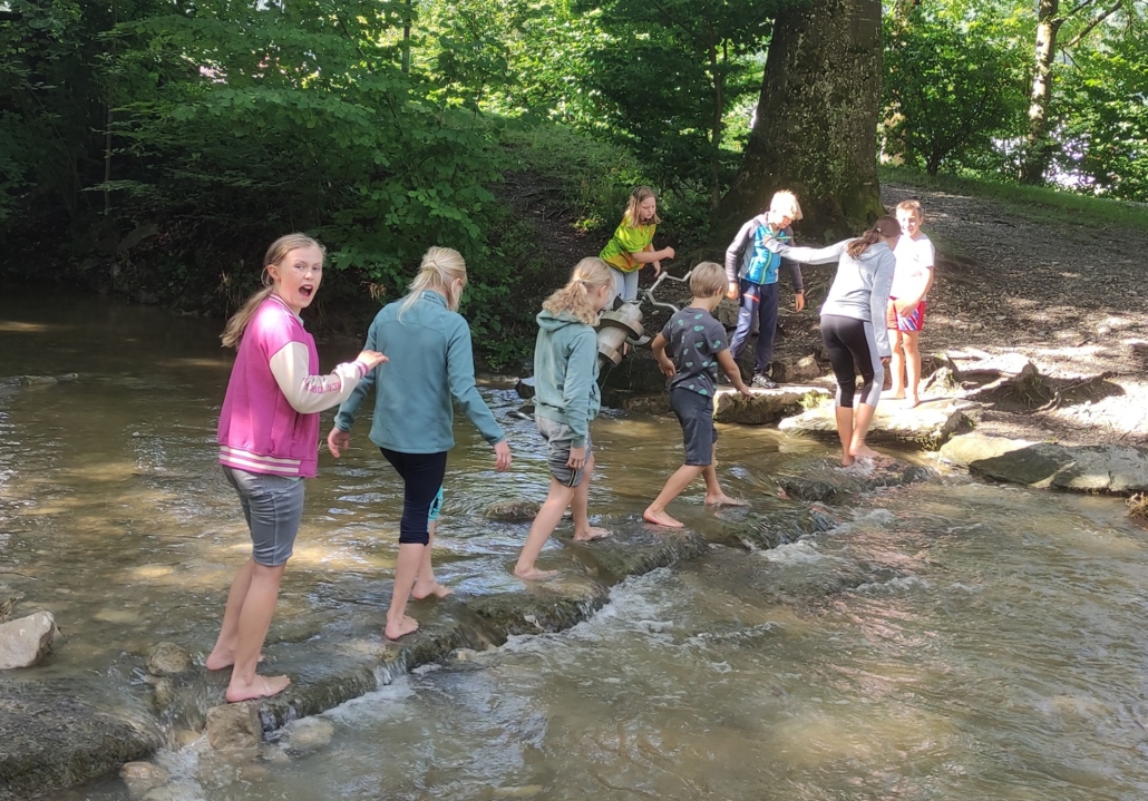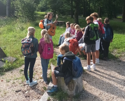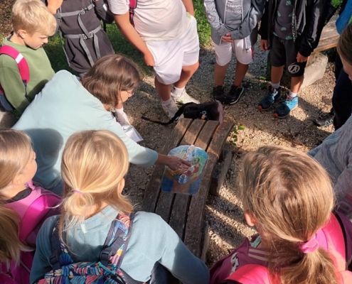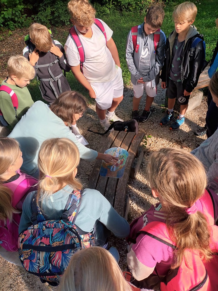 So waren die Kinder der Klasse 4b am vorletzten Schultag unterwegs. Ziel war der Themenweg „Auf Gottes Spur“ am Jenbach in Bad Feilnbach. Dort wurde das Wissen aus dem Religionsunterricht an den verschiedenen Stationen mit Liedern, Geschichten und Legearbeiten gefestigt. Anschließend blieb noch genügend Zeit um Schiffchen zu bauen und sie im Bach schwimmen zu lassen.