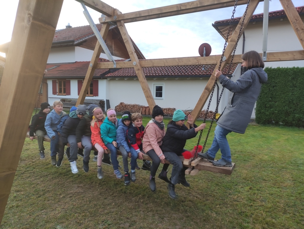 Dank dem Trachtenverein Großholzhausen durften alle Kinder der Grundschule am Kirtamontag auf der Kirtahutsch am Pfarrstadl schaukeln. Drei Klassen kamen sogar aus Nicklheim gewandert, um dieses Vergnügen nicht zu verpassen. Der Elternbeirat spendierte Striezl und so wurde es ein sehr vergnüglicher Vormittag. Herzlichen Dank!