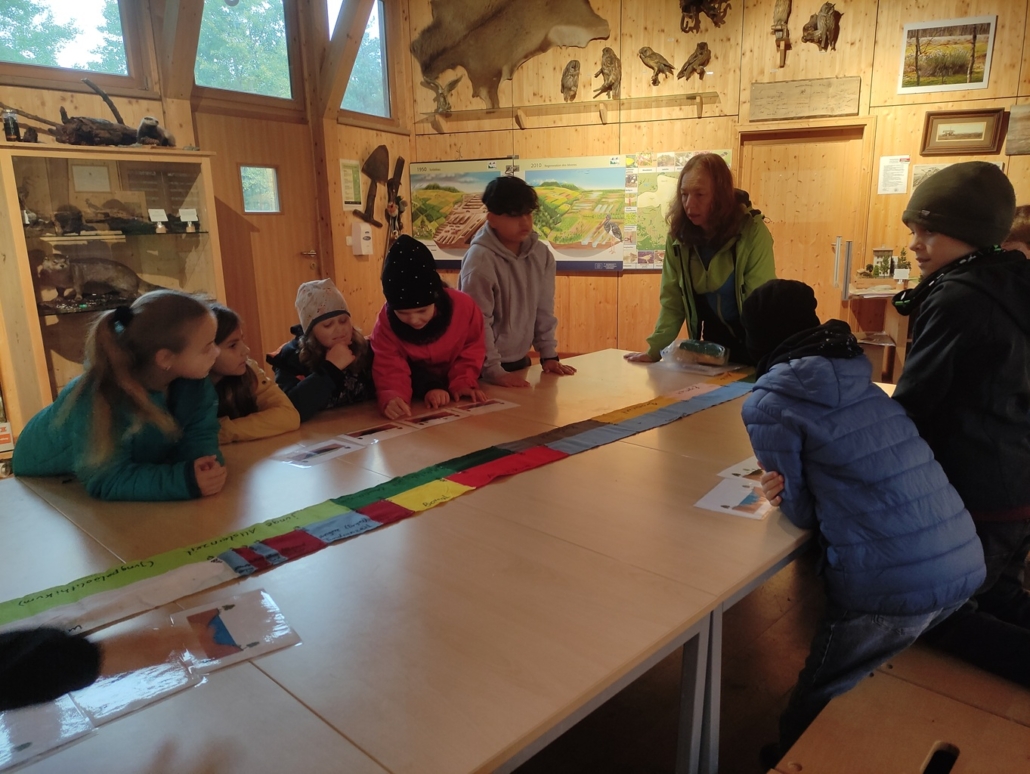 Bei herbstlichem Wetter machte sich die Klasse 4b aus Großholzhausen auf, um die Entstehung des Moores zu erforschen. Mit unserer Moorführerin Brigitte Holzner reisten wir bis in die Eiszeit zurück, untersuchten in verschiedenen Experimenten u.a. die Säure des Wassers und die Saugfähigkeit des Moores. Auf dem Rückweg bestaunten wir noch eine Biberburg. Herzlichen Dank für diesen informativen Vormittag!
